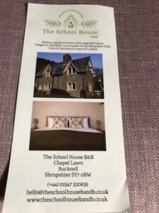 I just love spontaneous events and this weekend was no exception. I was whisked away to The School House, which is a fabulous Bed and Breakfast in the picturesque village of Chapel Lawn, nestling in the Redlake Valley in Shropshire. There, we were greeted by our wonderful hosts Claire and Dave. The weekend was made extra special, as our friends Roy and Karen from Thirsk, had made a booking for the same weekend, so it was great for us all to catch up and reminisce on days gone by. By the way, I have never heard anyone play the post horn gallop so well as Roy!