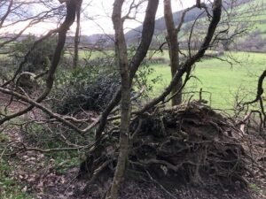 As you all know, I just love my walks and we were blessed with a dry weekend. So early on Mothers Day, I set off to discover the Brineddin Wood walk, especially as the room we stayed in, was named after the woods. It took me a little over an hour, as I stopped to take photos and take detours from the fallen trees. Even Shropshire suffered from the recent storms as you can see from the photos.