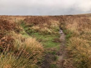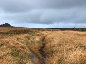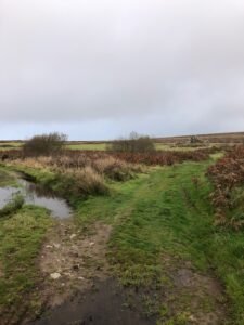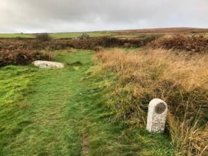 Continuing along this pathway, you will know you are on the right path, if you look behind you, and you see Carn Galver to your left on the horizon.